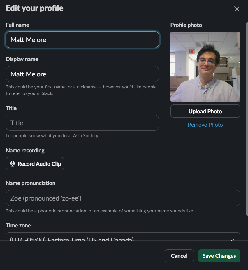 Hit Save Changes. You have edited your Profile for Slack.