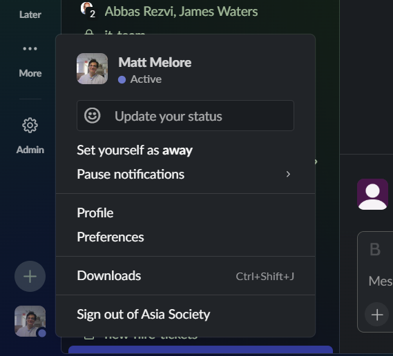 Click on your user icon on the bottom left hand corner