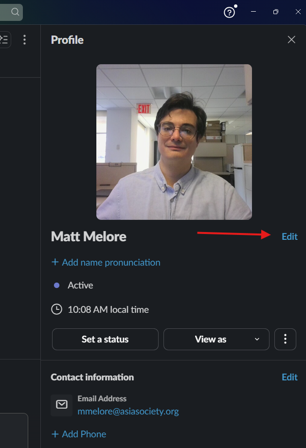 Click Edit to change your photo: